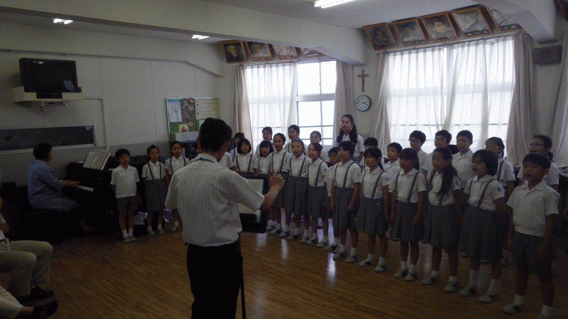 学校では夏休み学習と、ウィンドアンサンブル、聖歌隊の練習を行っています。