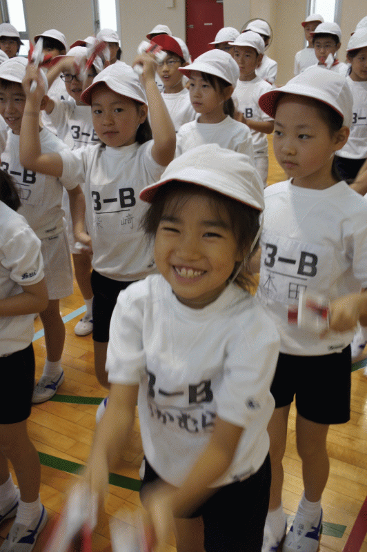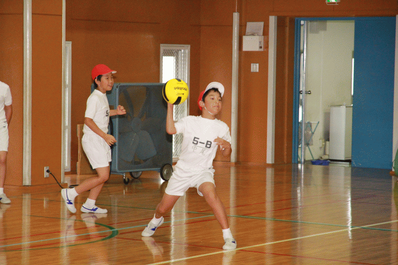 15分休み。5年生は次の3時間目も体育館で練習なので,そのまま体育館でドッジボールをして遊びました。