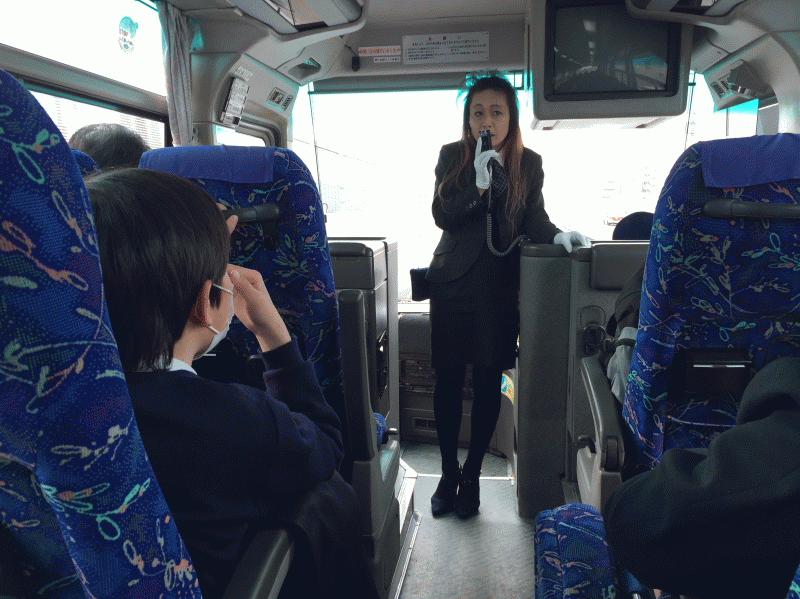 バスの中ではガイドさんが色々なお話をしてくださいます。