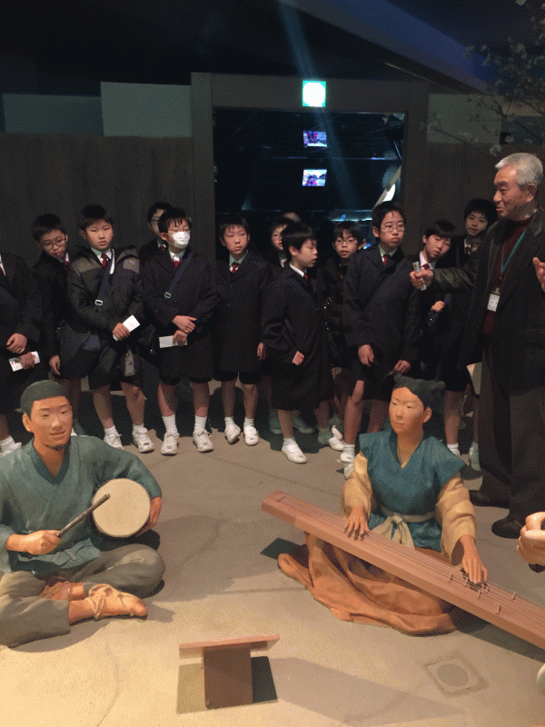 万葉文化館の見学の様子です。万葉集だけでなく,当時の人々の生活の様子もわかります。