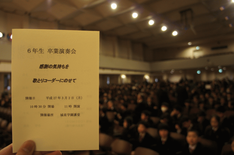 1〜5年生、先生、そして保護者の皆さんを招待しての演奏会です。