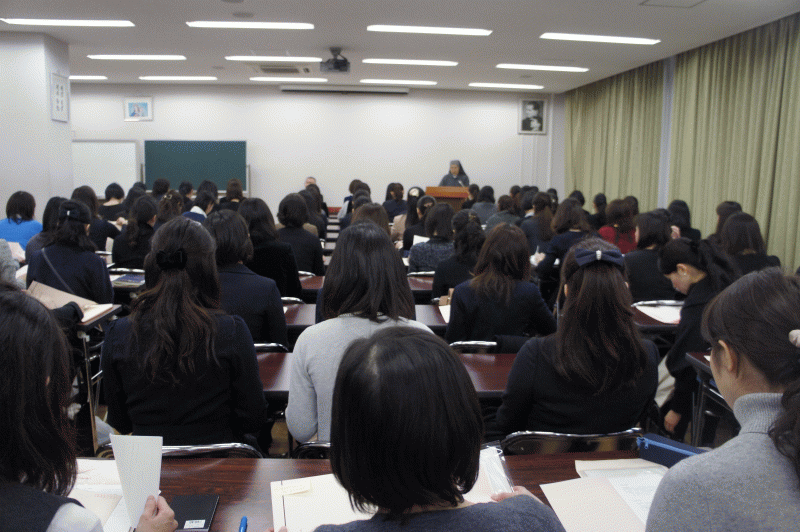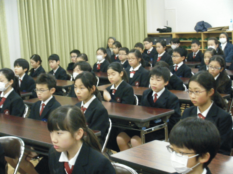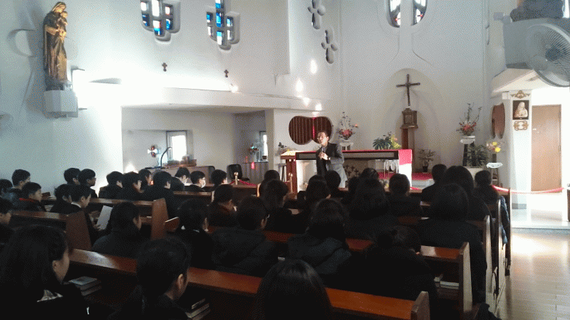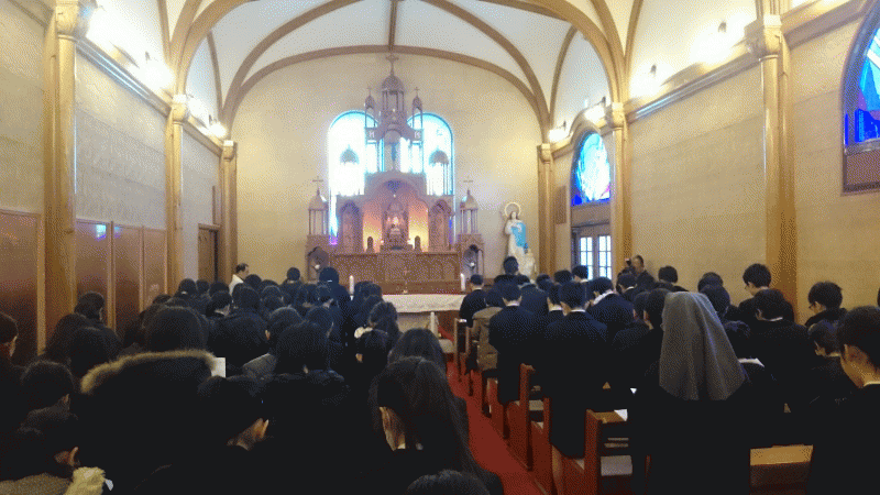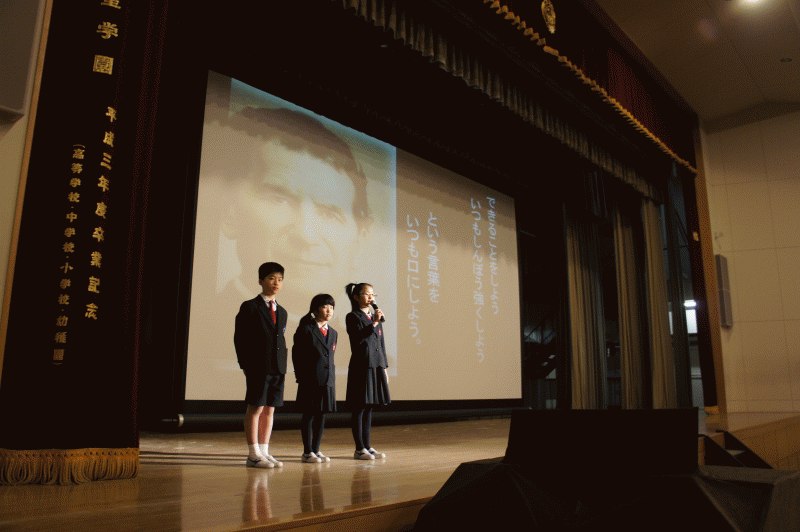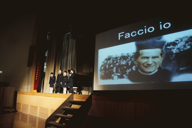 今日は典礼集会。中学年の子どもたちが、神父様になってからのドン・ボスコについて発表してくれました。