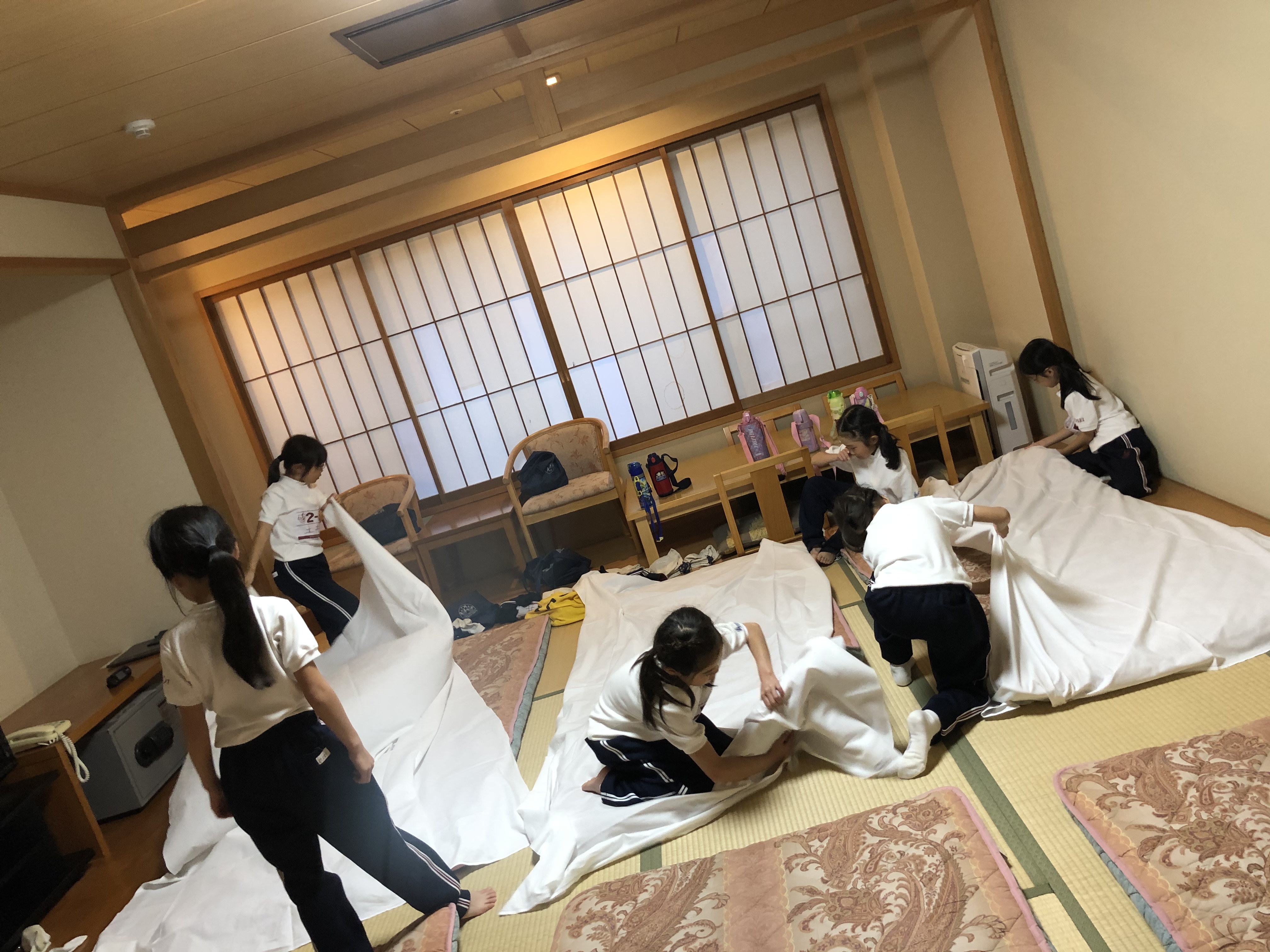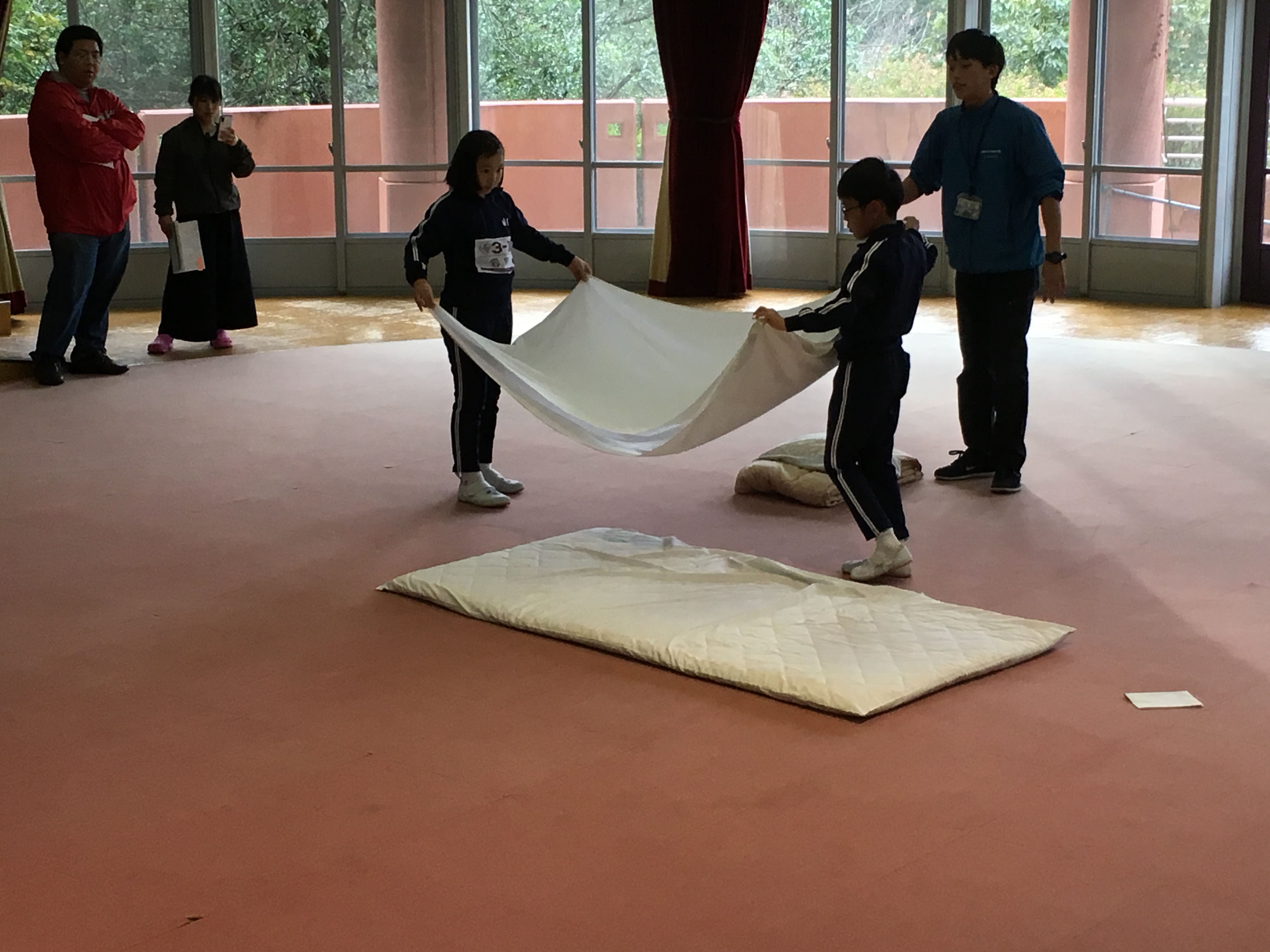 施設の方に、施設内の使い方や布団の片付けなど教えてもらいました。