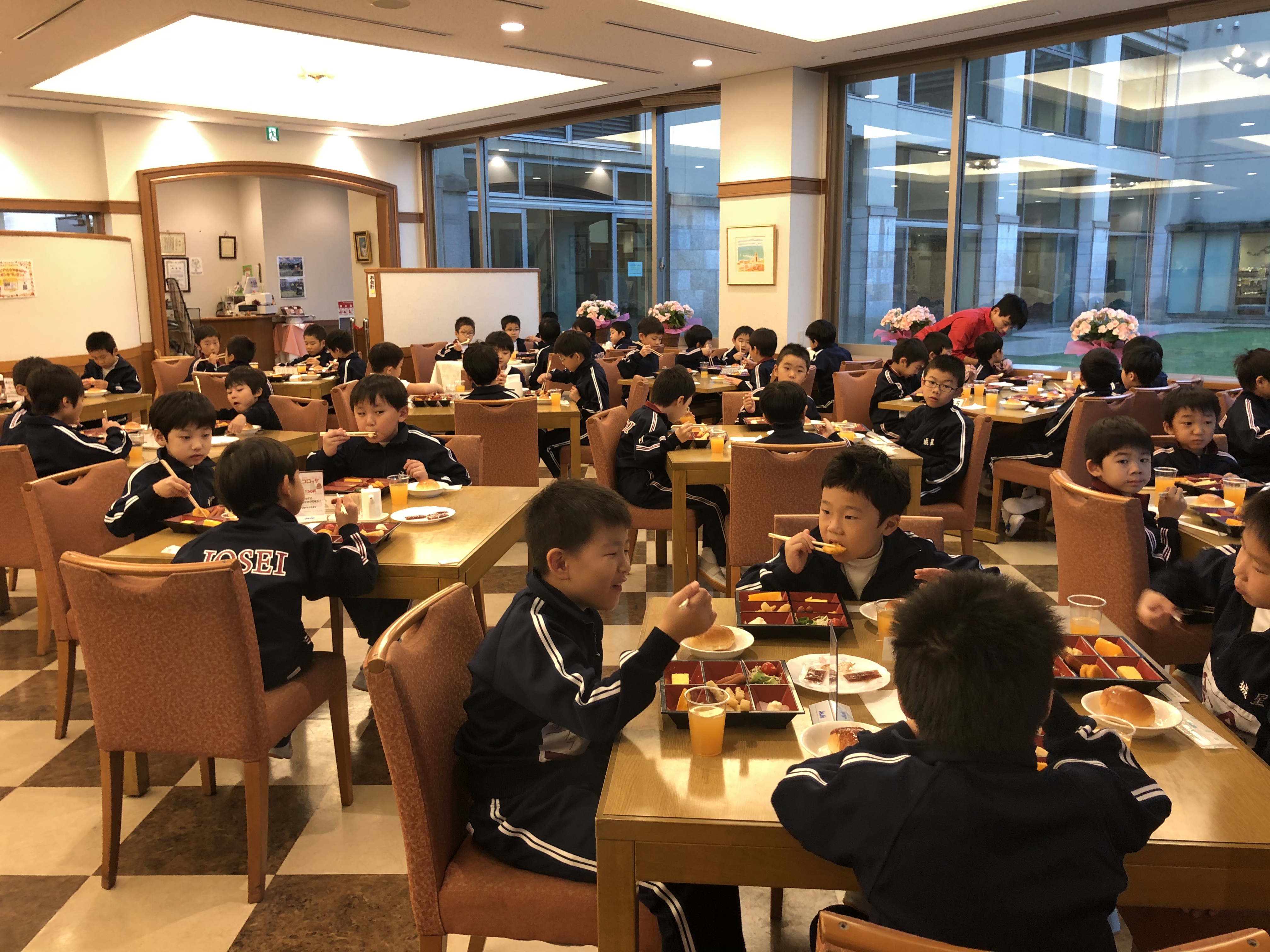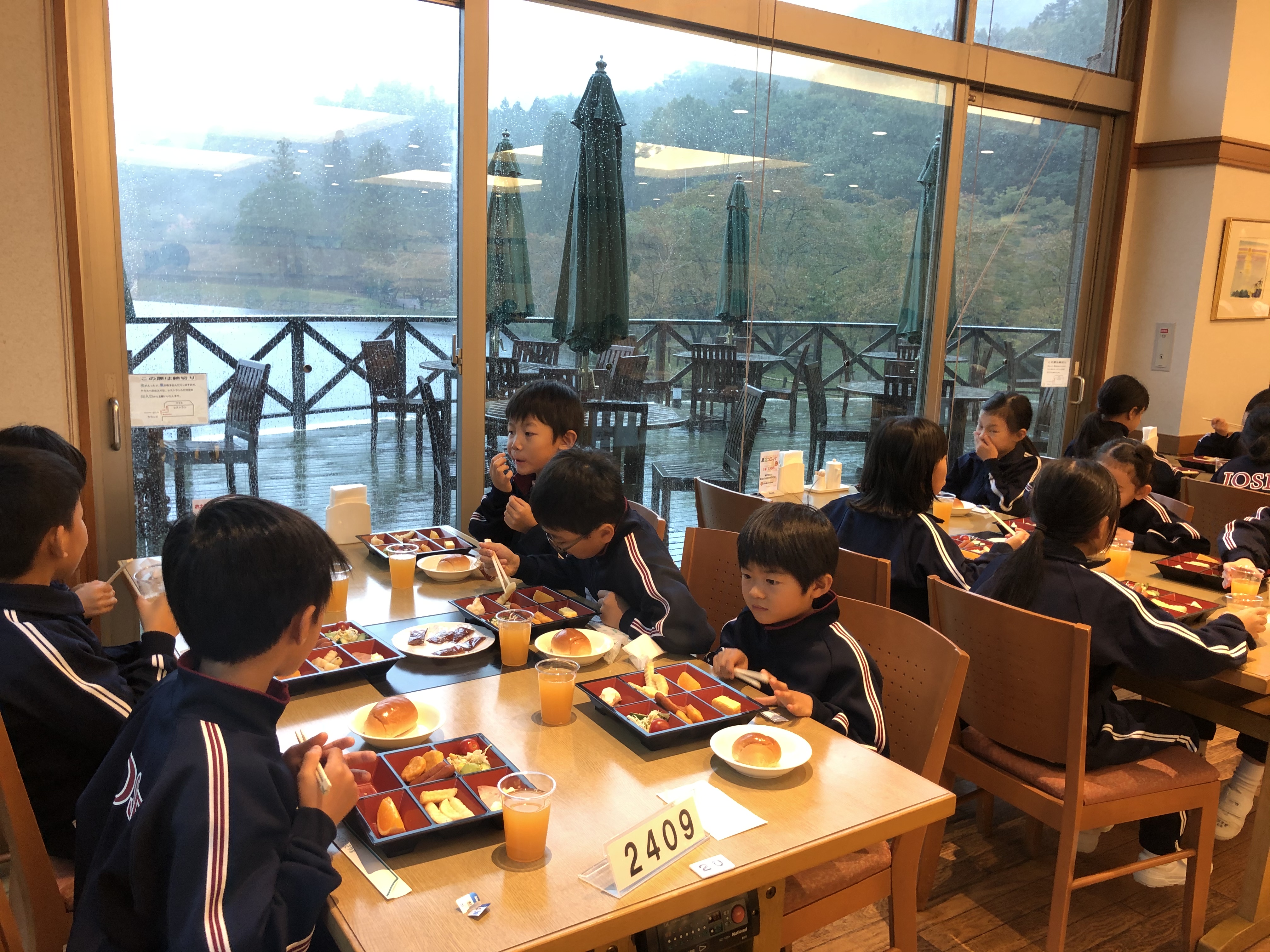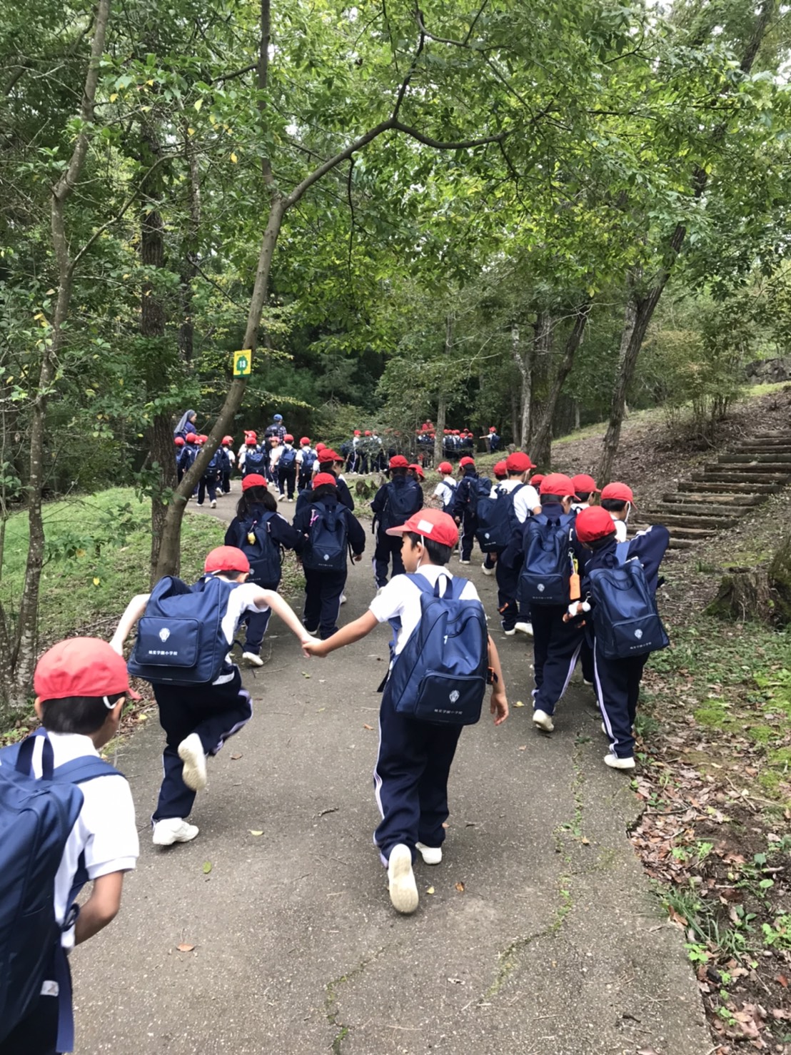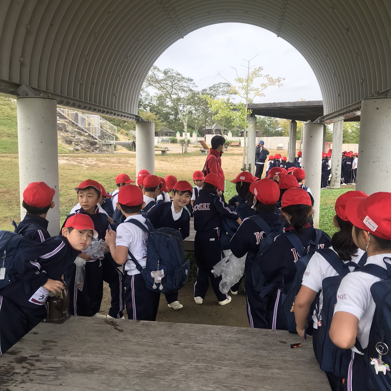 有馬富士公園に無事到着し、一年生は散策を、二年生はネイチャーハイクを楽しみました。今からユニトピアささやまに向かいます。