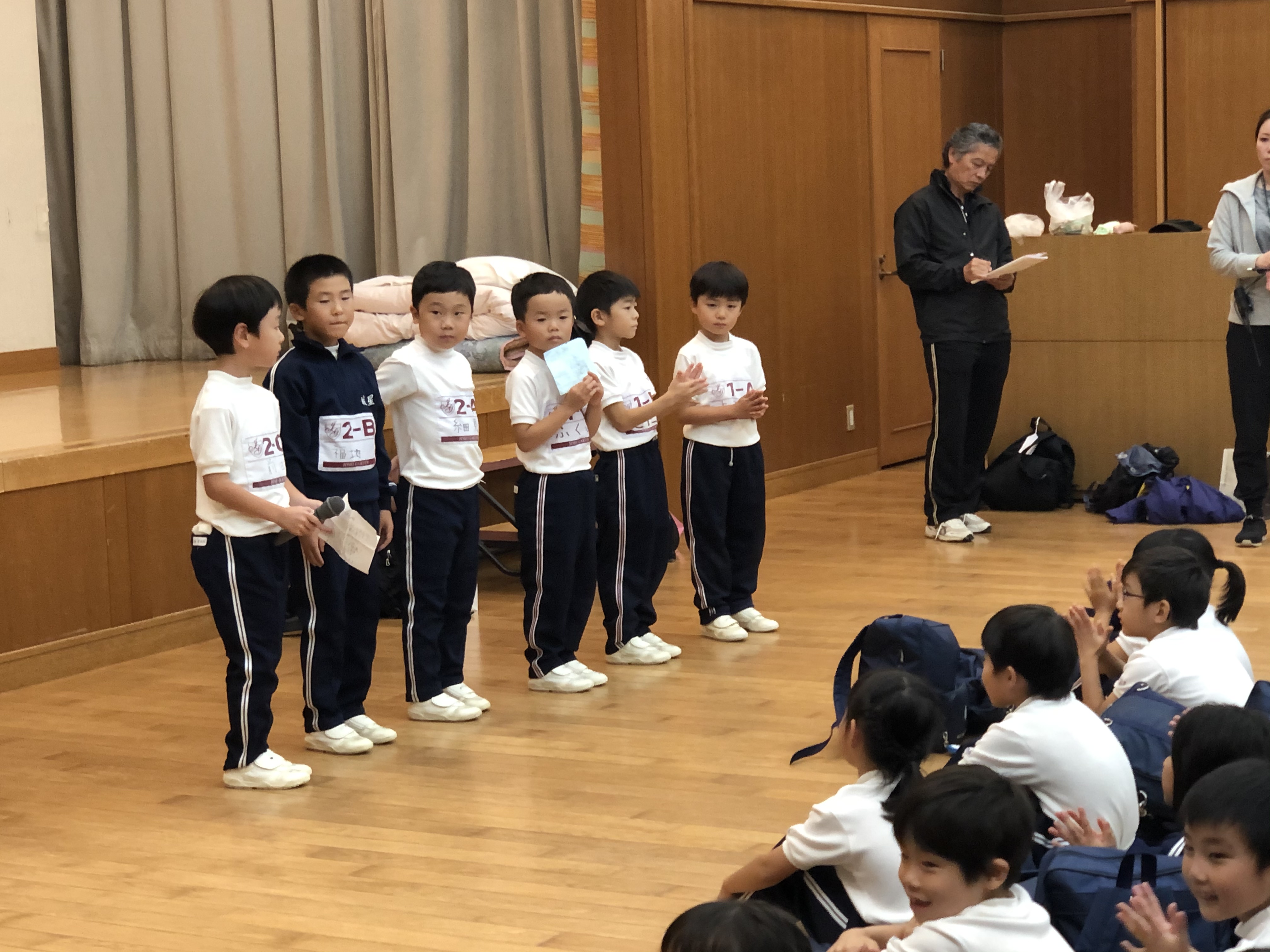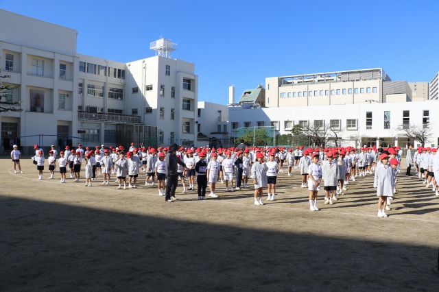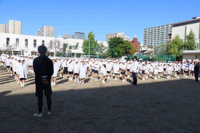 運動会に向けて,体育朝会では紅白に分かれての整列練習が始まりました。