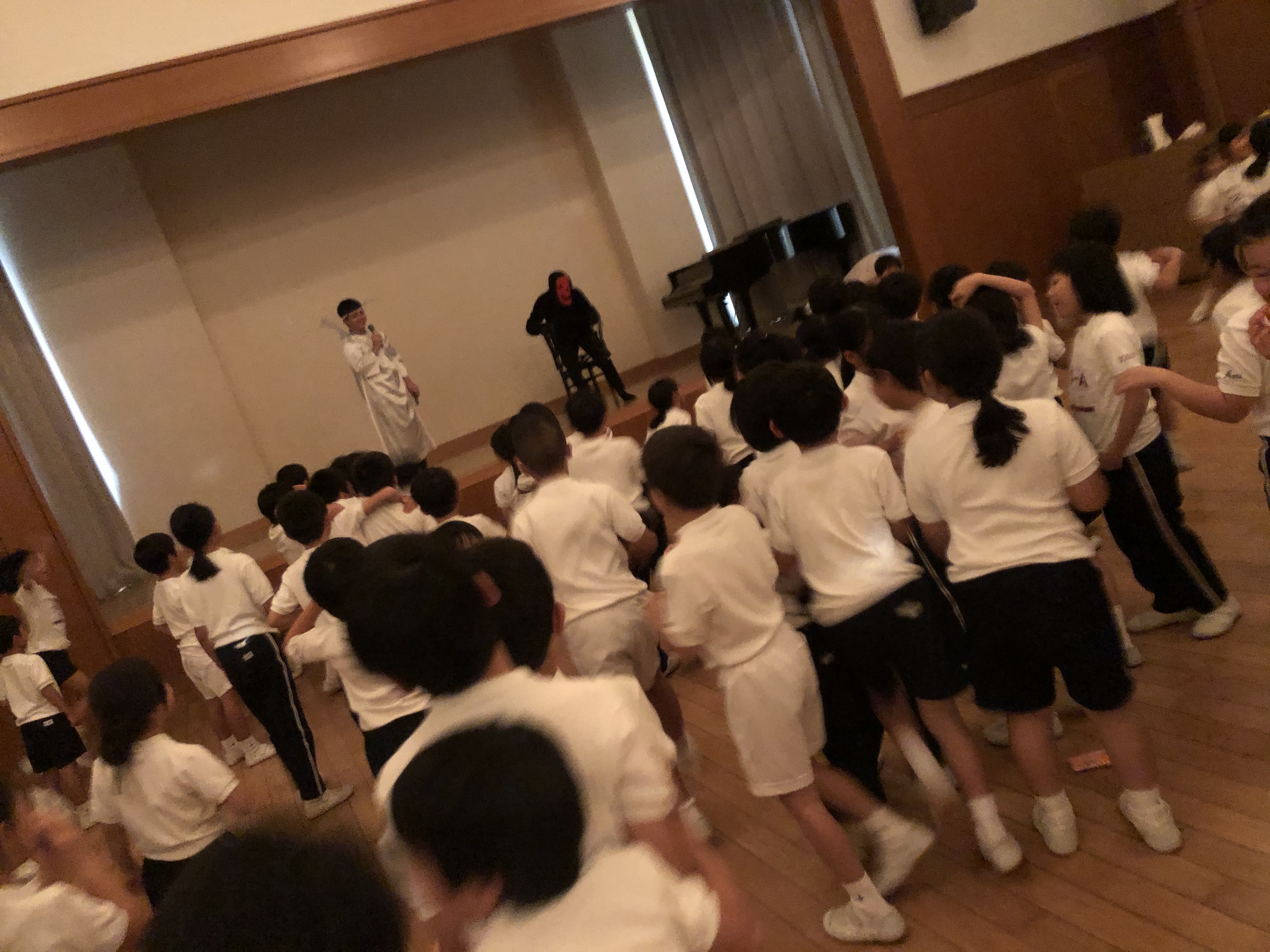 5年生の子どもたちとのパントマイム劇,引き込まれます。