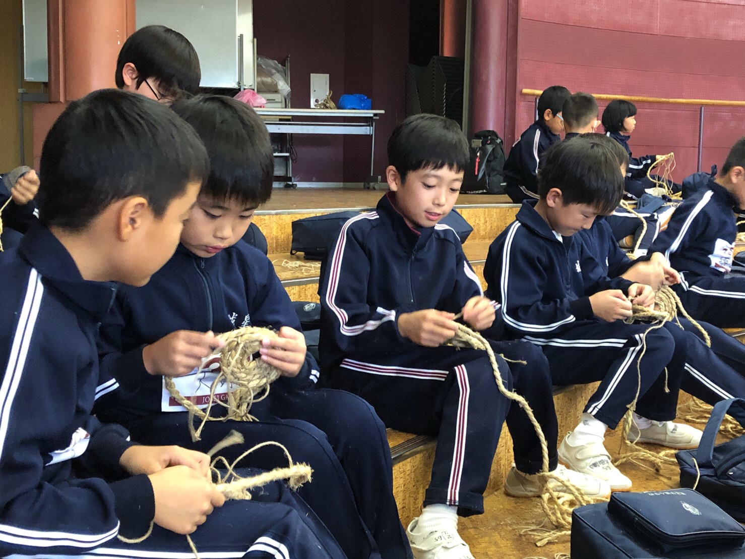 急遽縄クラフトの体験を用意していただき、みんなで挑戦してみました。