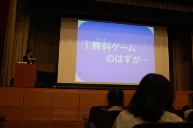 子どもたちにとって,今やとても身近になったSNSやネットゲームの危険性についてお話していただきました。