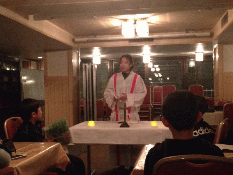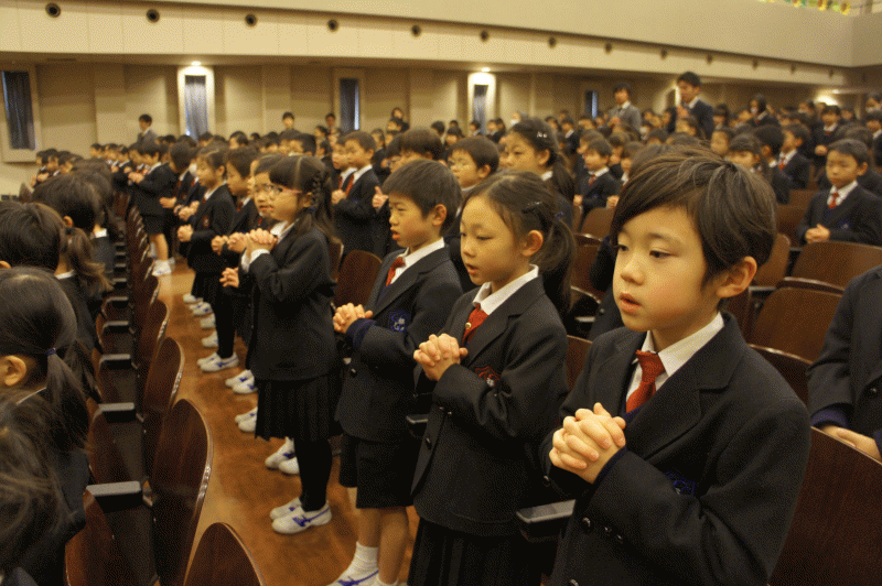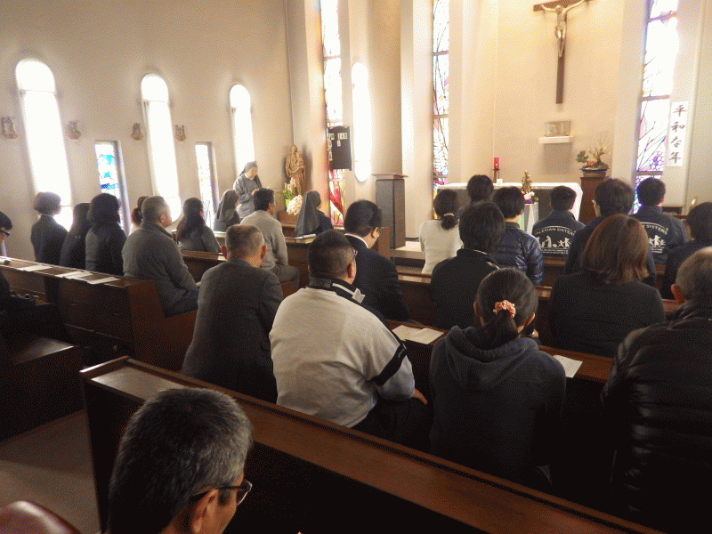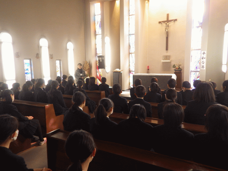 今日は小学校の先生が小聖堂に集まりお祈りをしました。