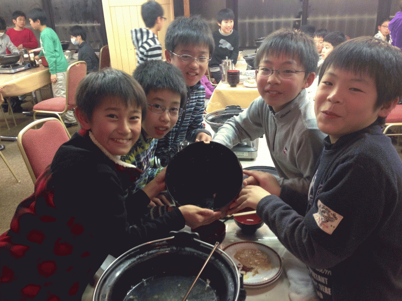 レッスンは終わりましたがスキースクールはまだ終わりません。夕食をいただいた後,大阪に戻ります。子どもたちの土産(話)を楽しみにしておいてください。