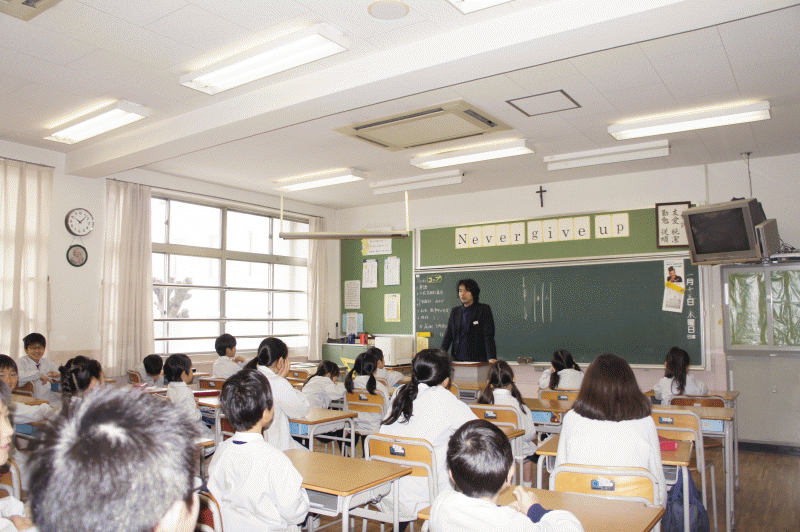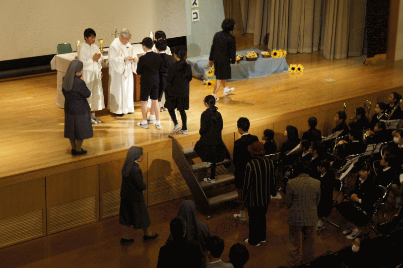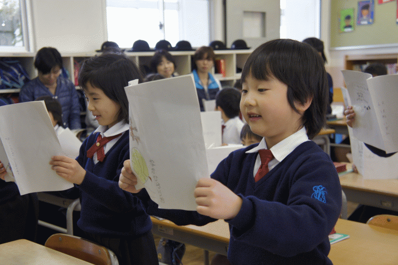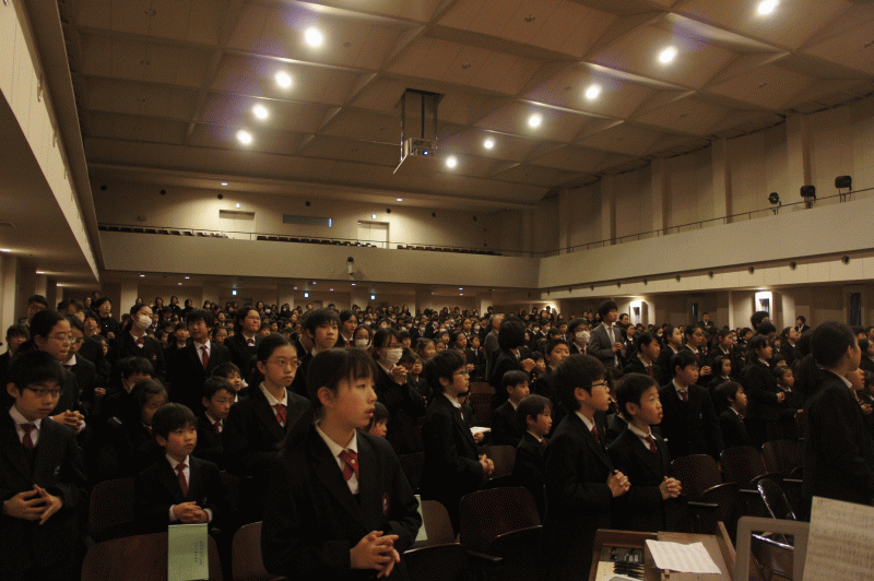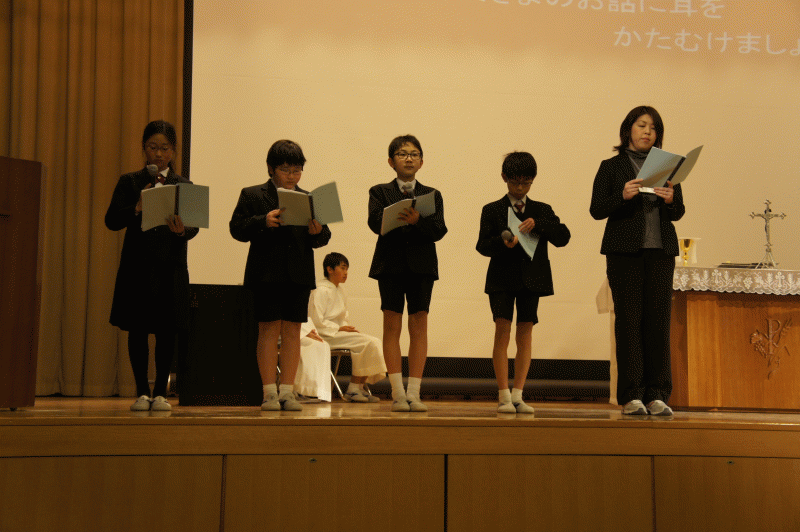 今日は宗教朝会の後、校内読書感想コンクールで各学年から選ばれた最優秀賞の表彰式が行われました。