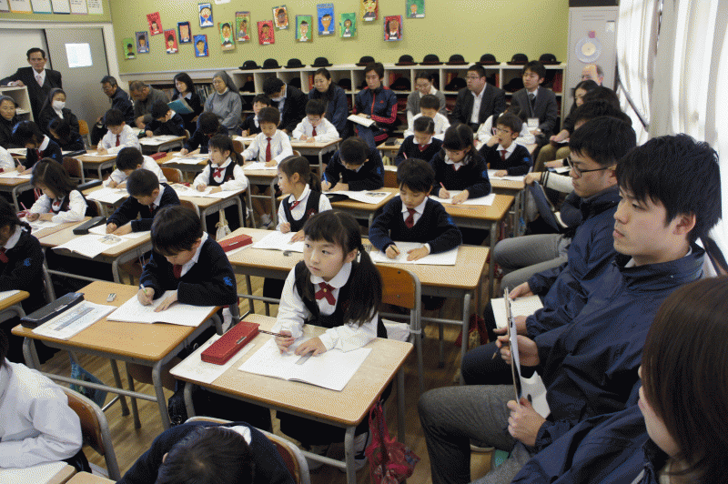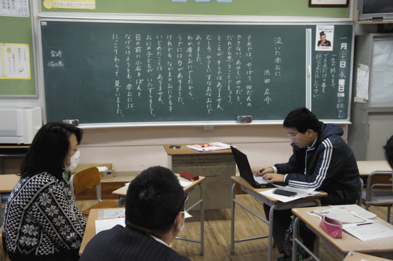 今日は子どもたちが帰った後に教師全員で国語の研修を行いました。