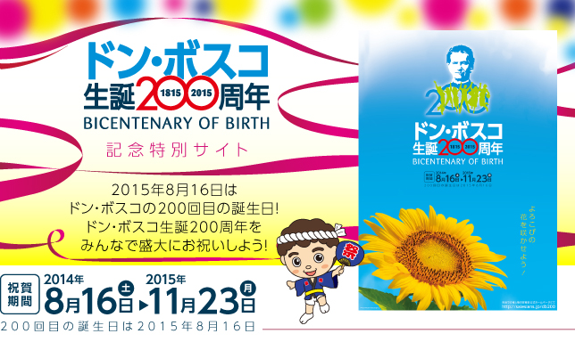 子ども達から募集したドン・ボスコTシャツのデザインや、ドンボスコの絵、それに元気な歌声が、サレジオ会のドンボスコ生誕200周年特設ページにアップされています!