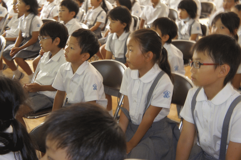 今日は、なんと城星学園の全児童と教職員が講堂に集まりました。