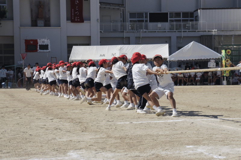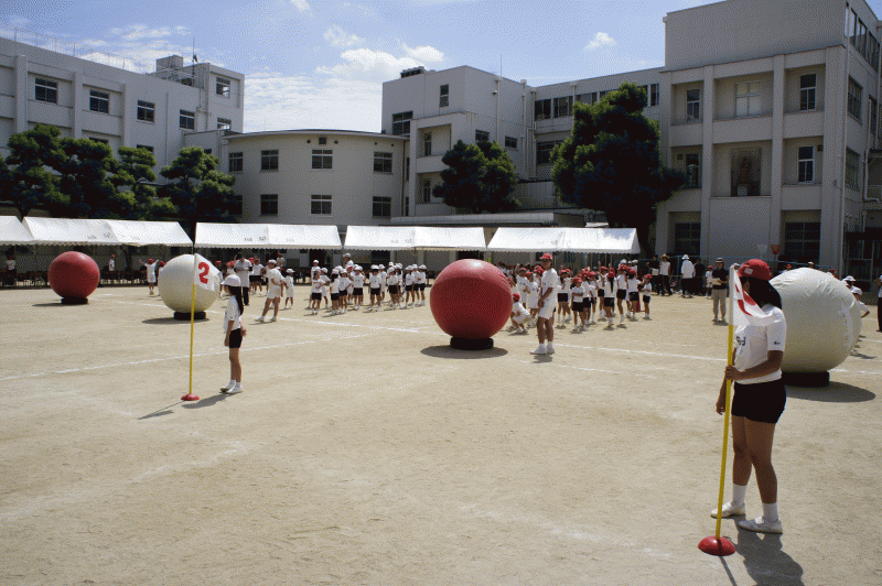 今日は運動会予行です。本番のように様々な競技、演技を行います。