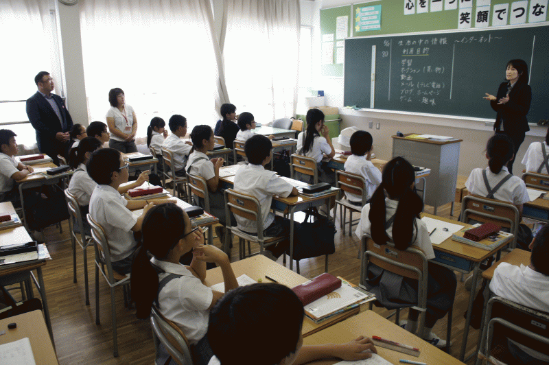 3年生の各クラスが受けた今回の英語出前授業、英語以外にも他学年では他の教科で行われます。