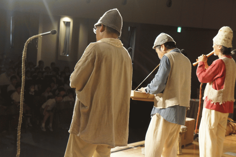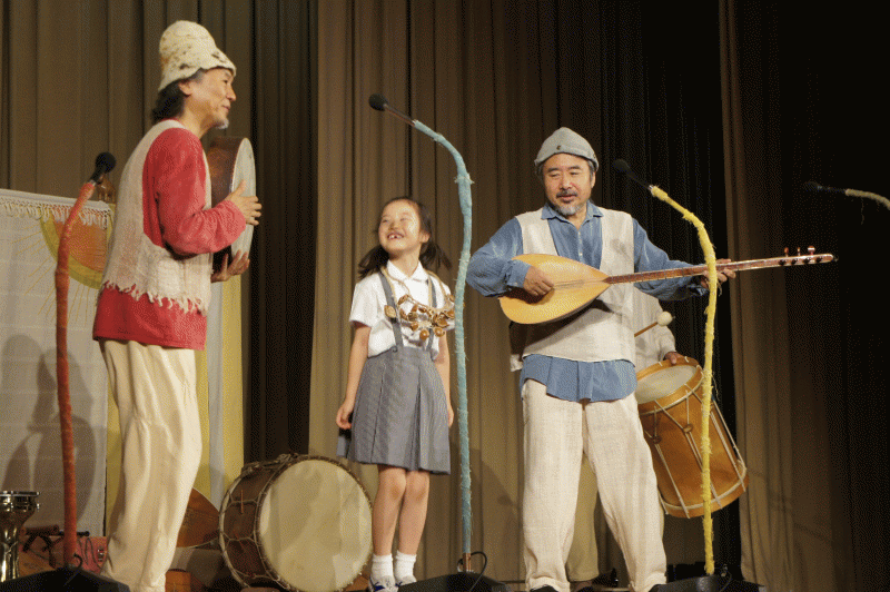 「ロバの音楽座」のみなさんが奏でる不思議な音楽に子どもたちもグイグイ引き込まれます。「次はどんな音が聞けるかな〜?」