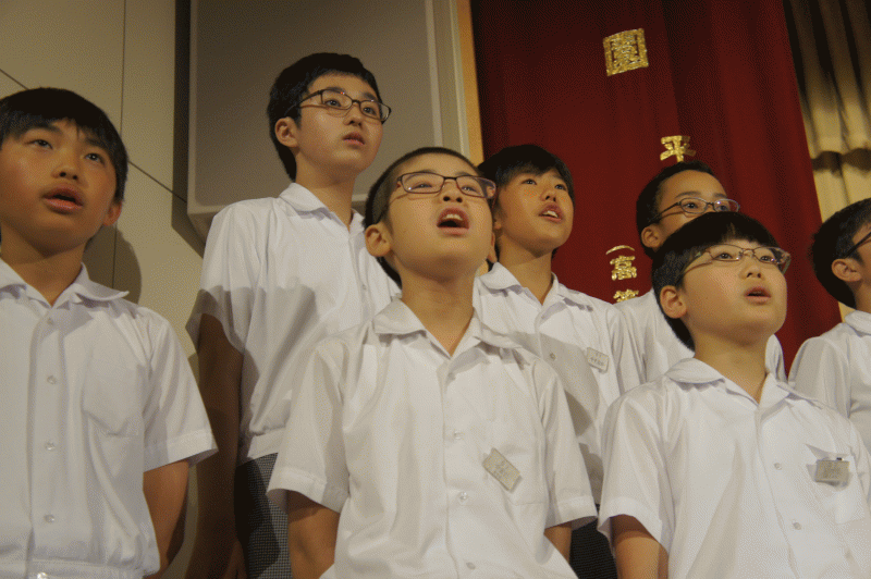 祈りの気持ちを聖歌に込めて。「神様、今学期もたくさんのお恵みをありがとうございました」