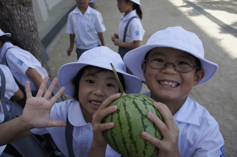 1年生が学級園で作っていたスイカが立派に育ちました。