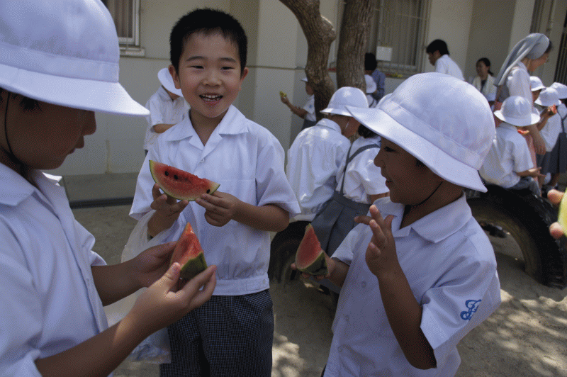 すいかの味はどうでしょう?子ども達の顔に答えが出ていますね。