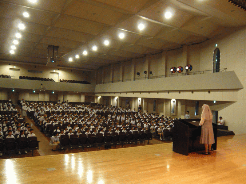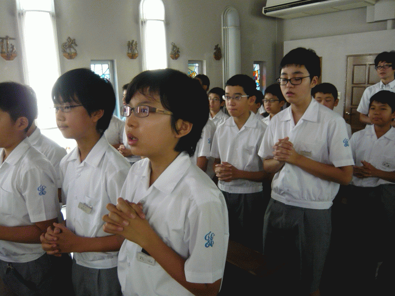 1学期も後1日。お御堂でお祈りをする学年、クラスもありました。