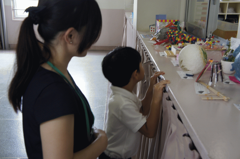 保護者の方々も一つ一つの作品に足を止めながら見て下さっていました。