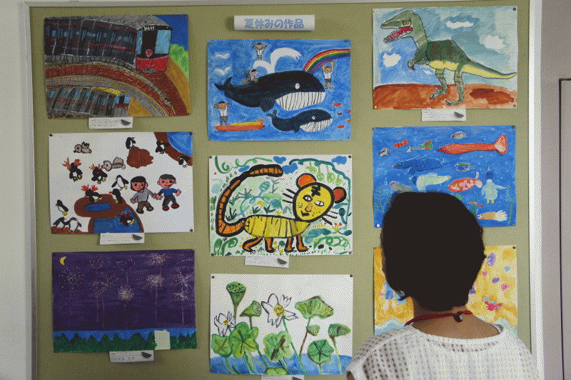 今日は夏休み作品展、午前中は保護者の方も子どもたちの力作を見に来られていました。