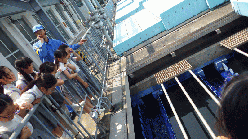 今日、4年生は社会科の校外学習で中浜下水処理場へ行きました。