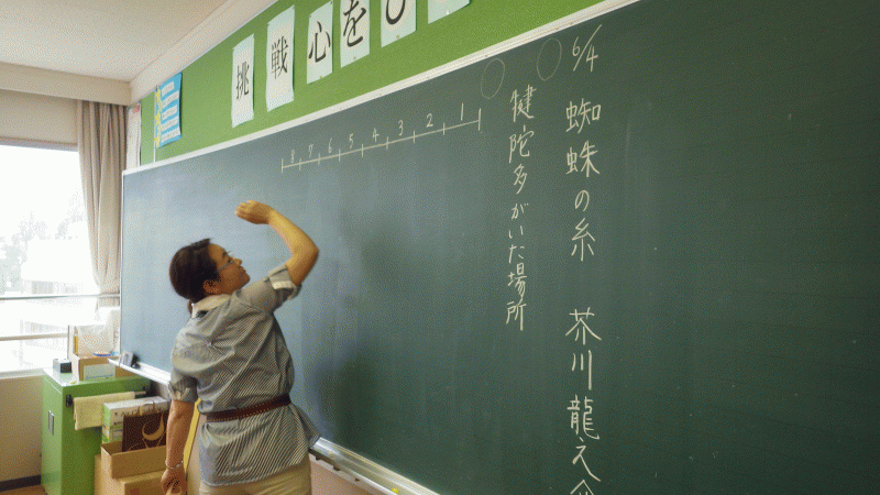 4年生が芥川龍之介の「蜘蛛の糸」を読み深めます。