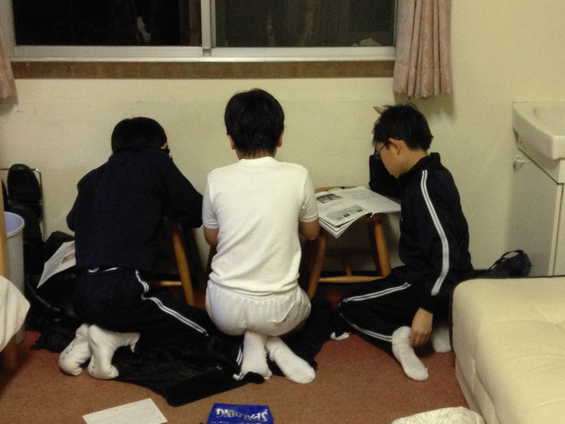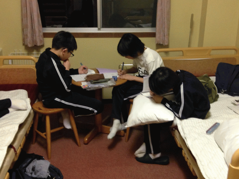 避難訓練が終わり、今は交代でお風呂に入っています。