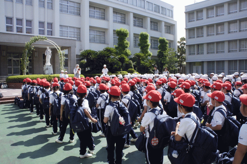 マリア様に見守られ,開校式を行いました。