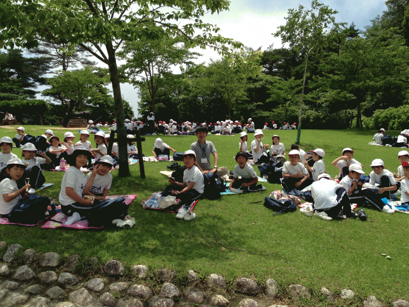 今日から1・2年生はサマースクールにでかけました。良い天気にも恵まれ,子ども達も元気いっぱいです。