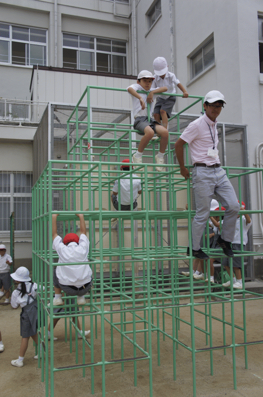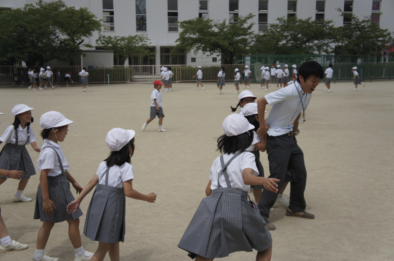 2年生は先生と鬼ごっこ、みんなで先生を追いかけます!