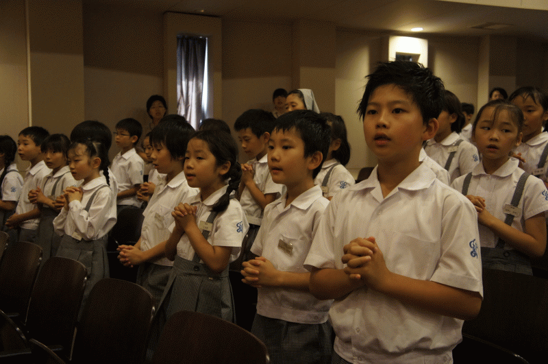 1学期を無事に今日終われることに感謝して、みんなでお祈りします。