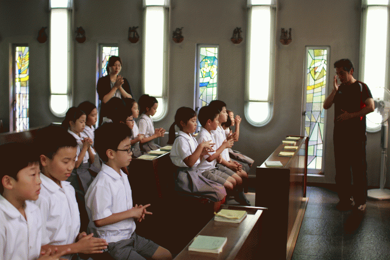 低・中学年はまずは聖堂でお祈りです。