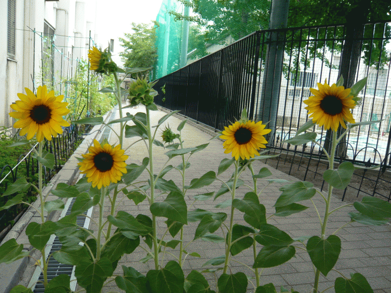 1年生の生活科の授業で植えたひまわりが花を咲かせました。