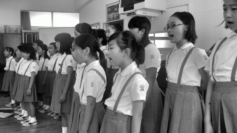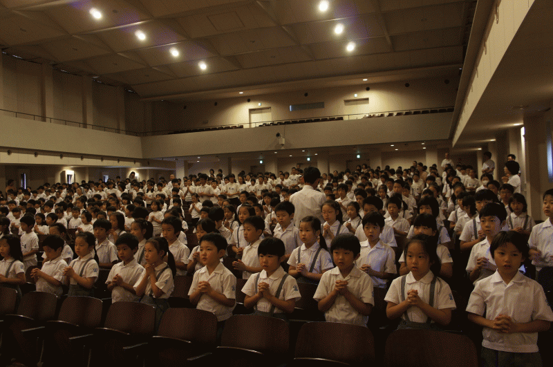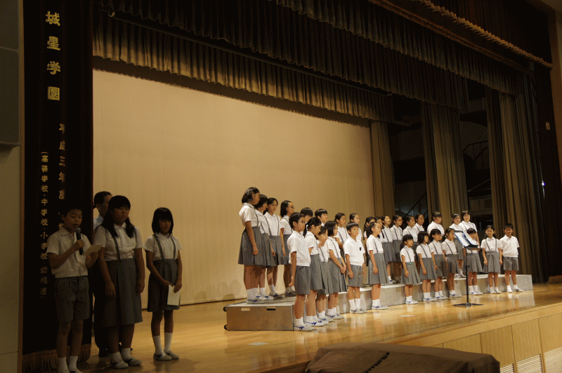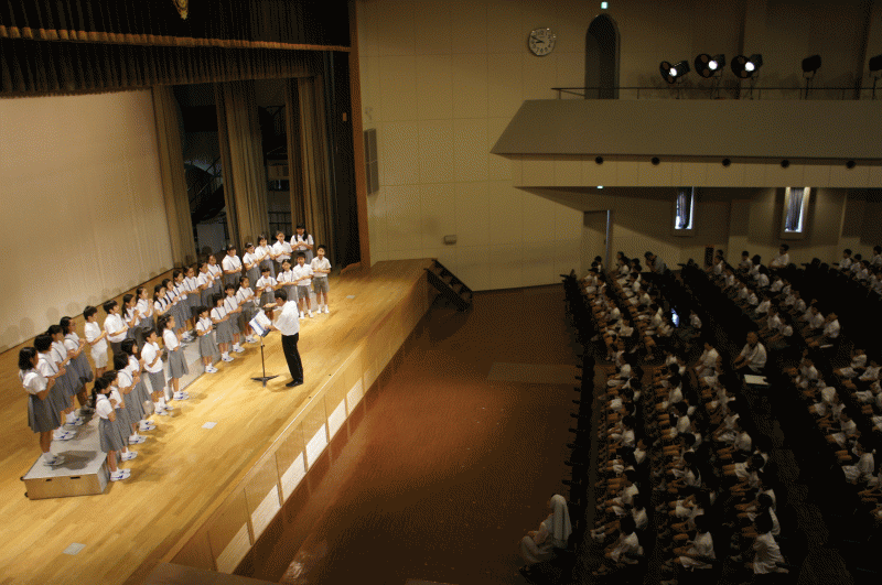 今日は音楽朝会、講堂で聖歌隊が澄んだ歌声を披露してくれました。