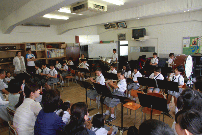 夏休みも子どもたちとともに学習をしたり、歌を覚えたり、楽器を練習したりと元気に活動中です。今日は、先生方に日頃の成果をみてもらいました。音楽室に子どもたちの元気な演奏と歌声が響きわたります。