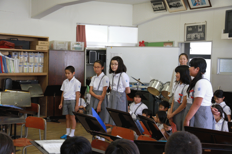 各学年で2曲演奏します。どの学年も自分たちの持ち歌を披露してくれました。