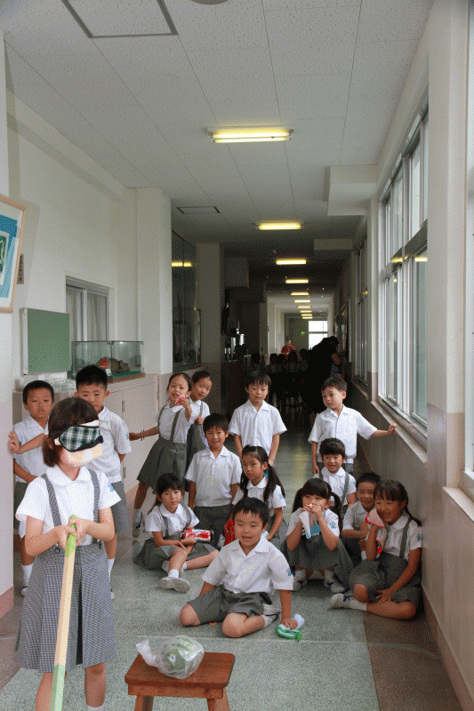 外でできなかったので、廊下で行いました。