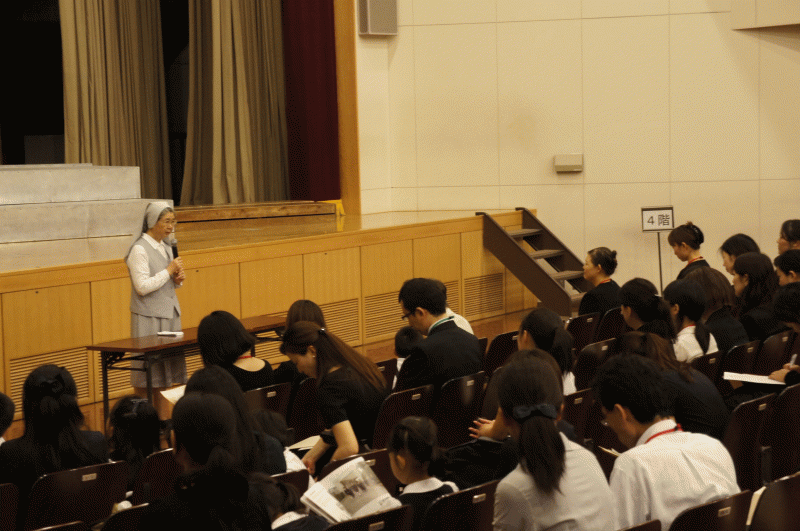 講堂から教室に戻る前に講堂に立ち寄る学年もありました。これから迎える二学期を実りあるものとできるように、お祈りと自分との向き合う時間を過ごしました。