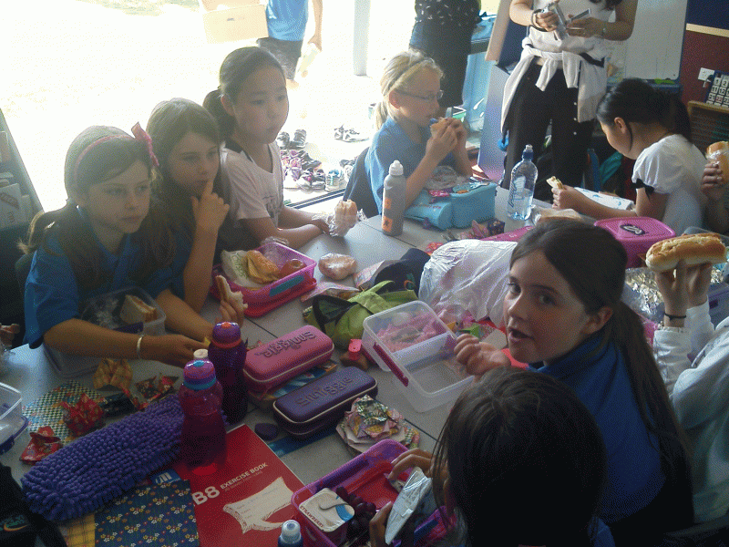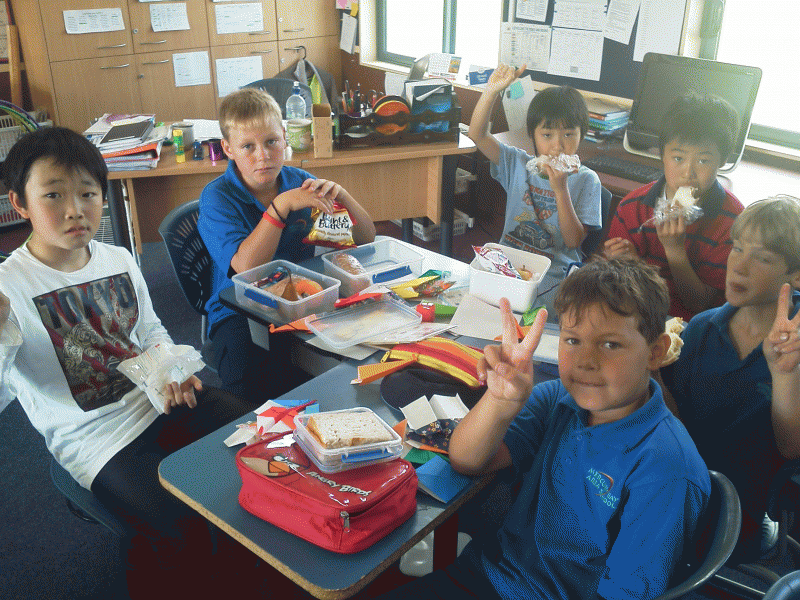 現地校の子どもたちとランチタイムです。え?お菓子持ってきていいの?どうやら自由なようですね。ホストファミリーが作ってくれたランチを食べて現地の子どもたちとお別れをしました。