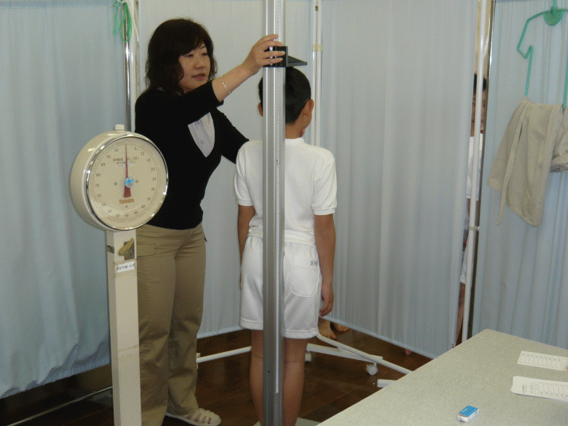 身長、体重、座高を測ります。中には「太ったわ〜・ダイエットせな〜」なんて言ってる子もいますが、気にしないでよろしい!みなさん成長期なんです!いっぱい食べてどんどん大きくなりましょう!