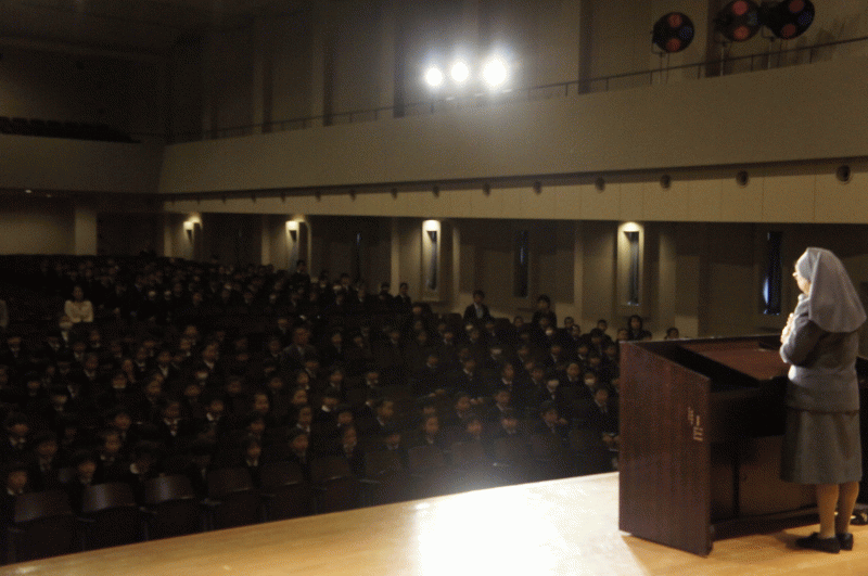 講堂では聖歌隊の子どもたちが歌でお出迎え。