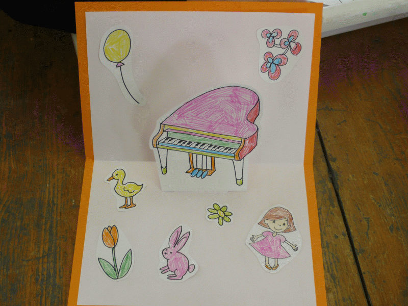 かわいい飛び出すカード作り、一生懸命作った作品はどれも力作です。