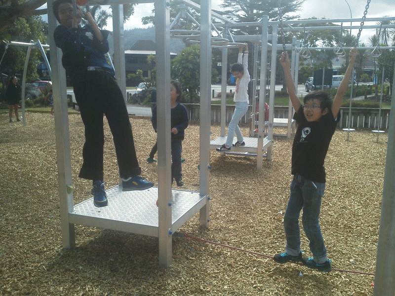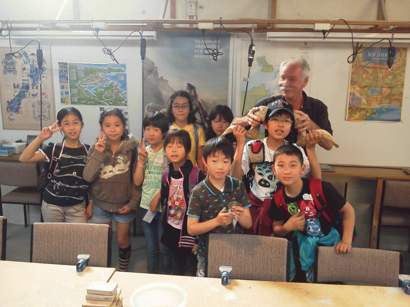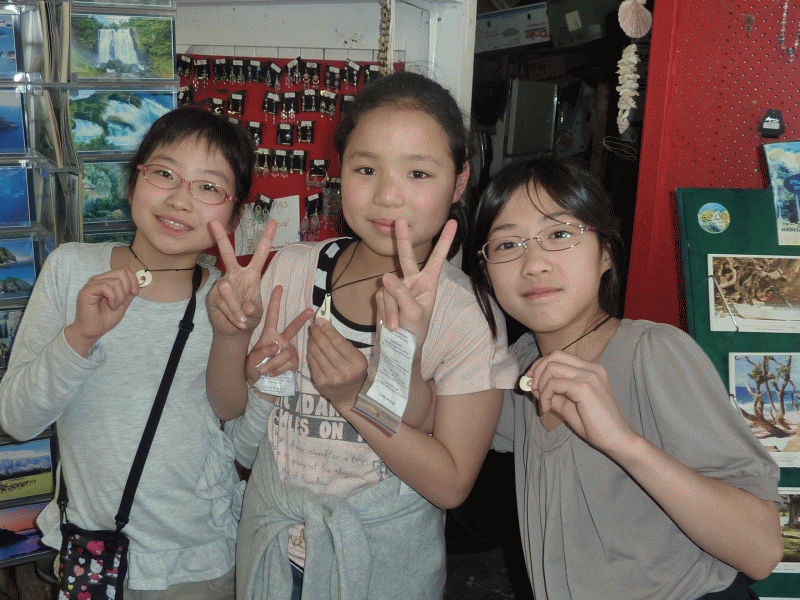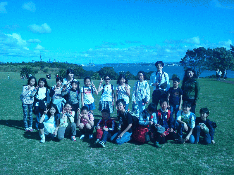 オークランドから3時間のバスの移動です。子どもたちは休憩時間にちょっと公園へ。海の見える公園でカニを穴から掘り返して捕まえてます。「カニ持って帰っていい?」と子どもたち・・・。「かわいそうやろう・・・」先生。諦めました。この後、1時間ほどでホームステイ目的地に到着です。