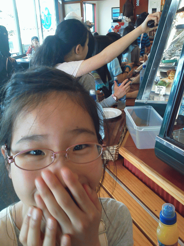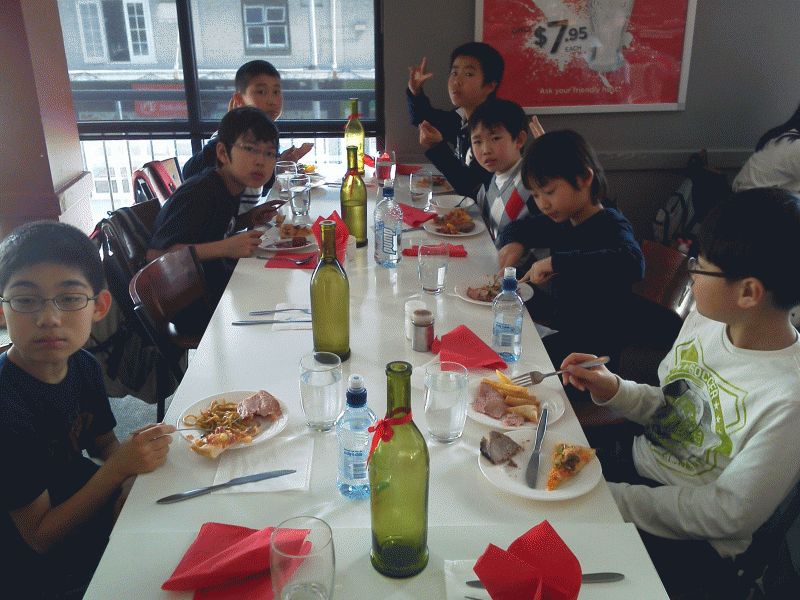 地下水族館を見学し一行は、お昼ご飯。海外の食べ物に戸惑いながらもしっかりデザートまで食べて大満足。