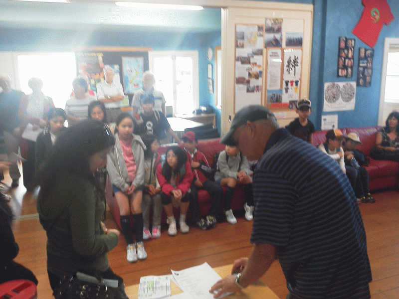素読に挑戦した子どもたち。みんなでそろって読みました。