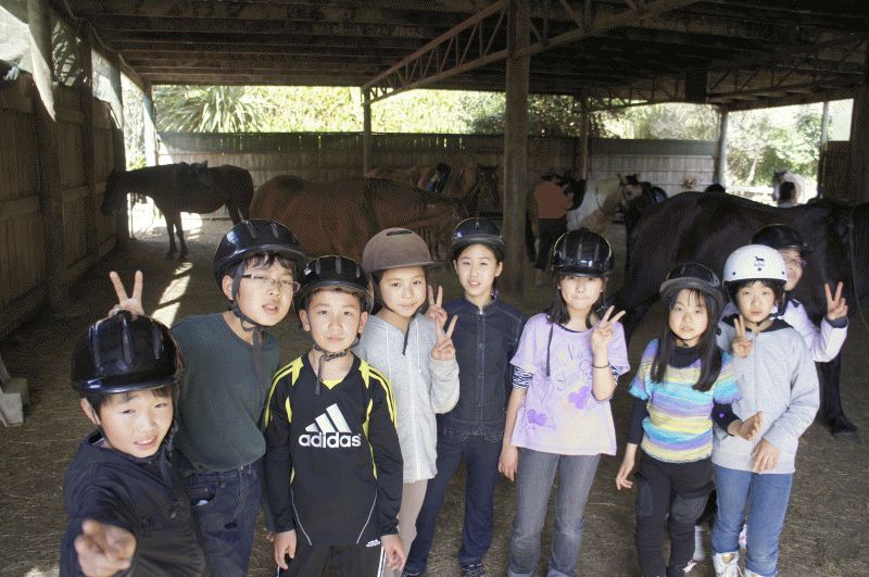 今日のレッスンが始まりました。18名みんな元気です。天気は快晴。今日の乗馬体験もどうやら問題なく楽しめそうです。小鳥のさえずりが聞こえるさわやかな朝、英語のレッスンがどんどんすすんでいきます。