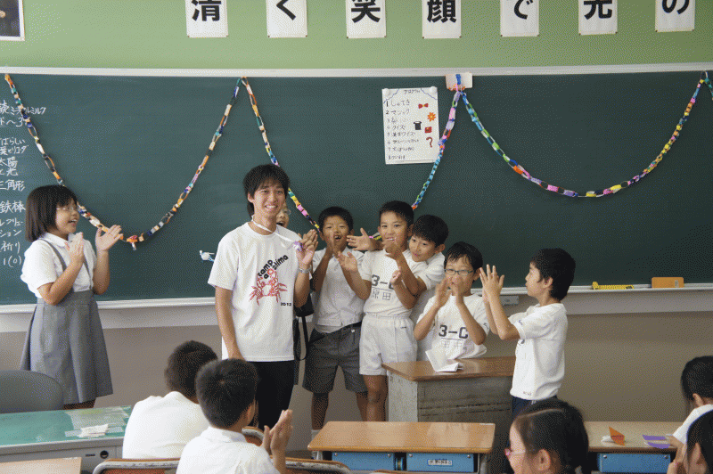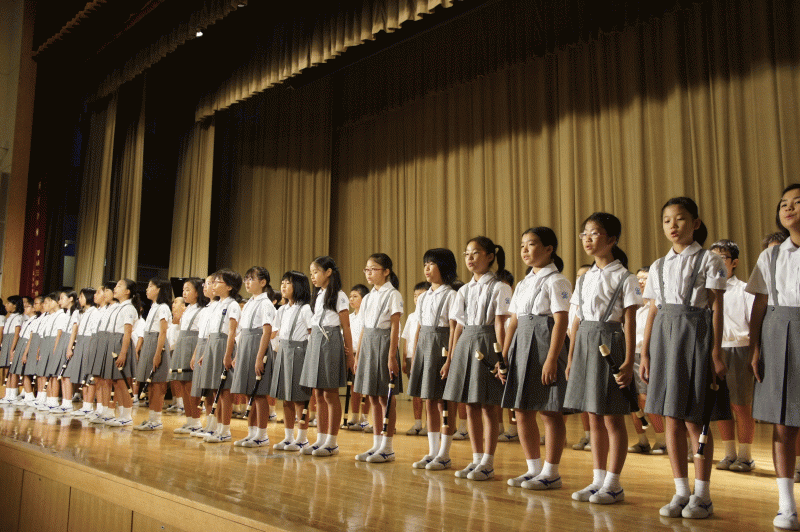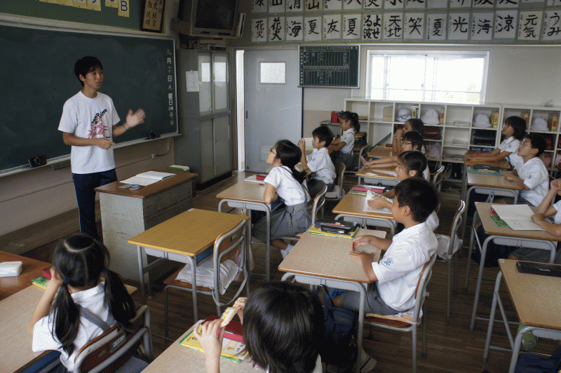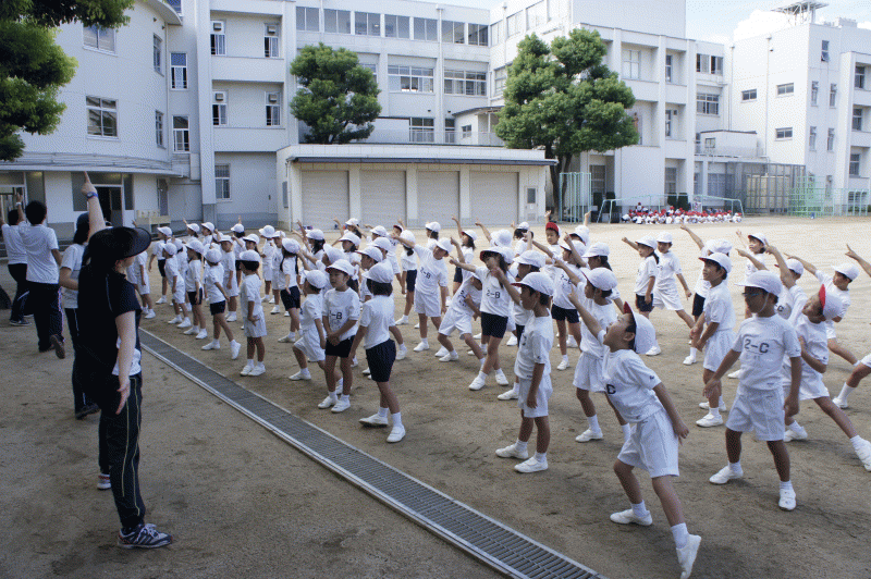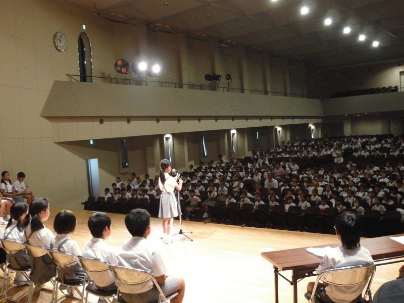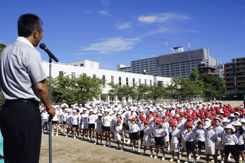 10月は読書月間、朝会の前に教室で読書をします。しかし今日は外での朝会。